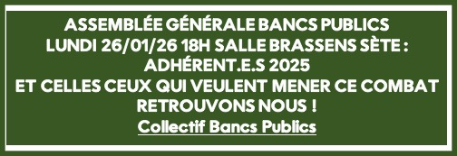 Le Collectif Bancs Publics, l’association Bancs publics, auront mené jusqu’à ce jour, des actions exemplaires, d’informations, d’actions judiciaires, d’alertes, des actions pacifiques. Cela restera, quoiqu’il advienne, dans notre mémoire sétoise et collective.